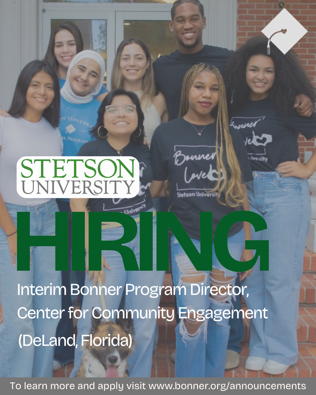 The Center for Community Engagement at Stetson University is seeking an Interim Program Director for our Bonner Program for the Spring 2026 semester (January – May). This is a critical position that will ensure continuity and excellence for our 60+ Bonner students and 20+ community partners during a transitional period.